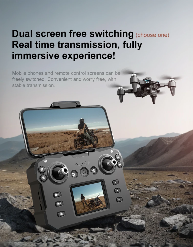 - Transmisión de imágenes en tiempo real: la transmisión inalámbrica de 2,4 G garantiza una transmisión en directo de alta definición directamente a su smartphone (compatible con pantallas de hasta 5,5 pulgadas) para una experiencia FPV inmersiva.