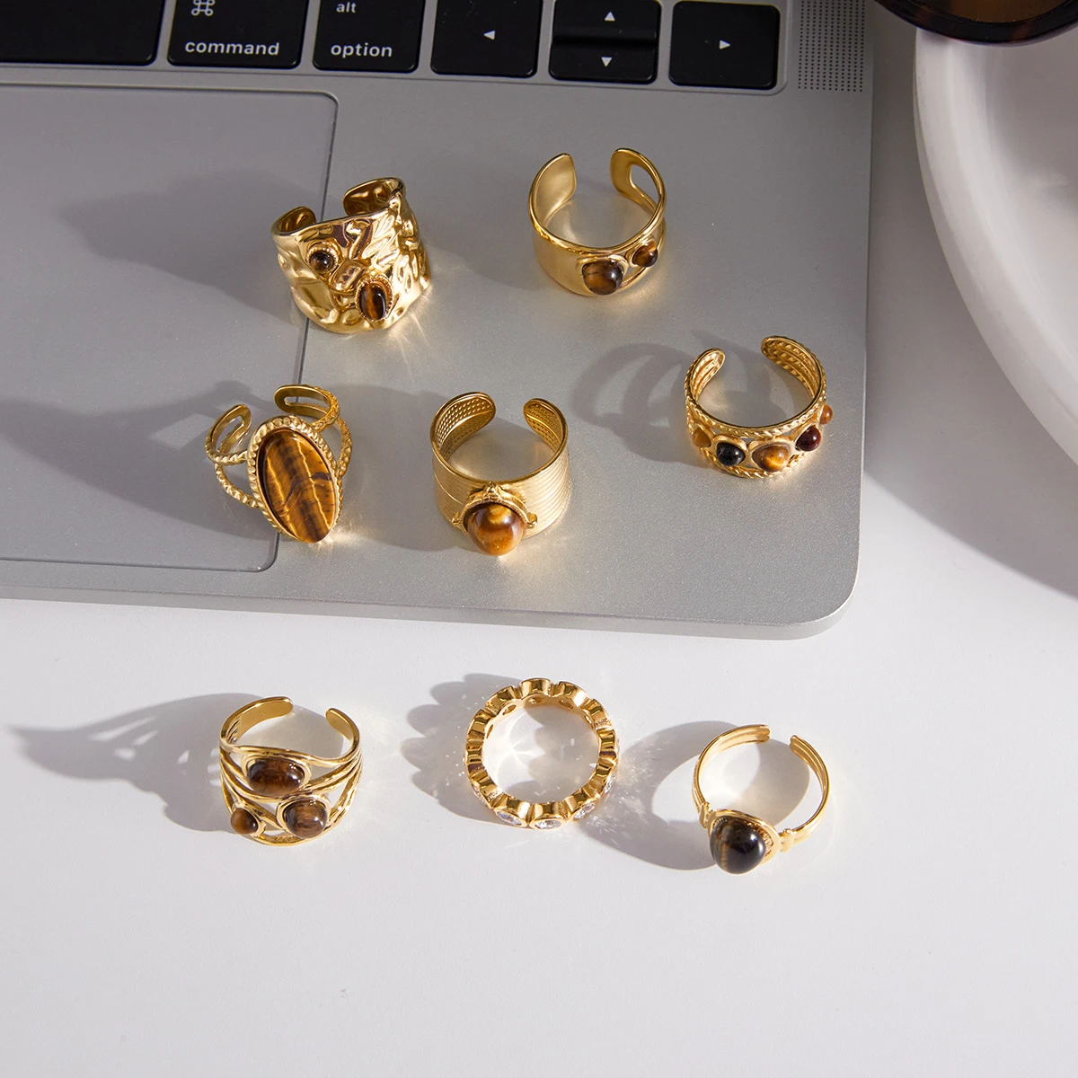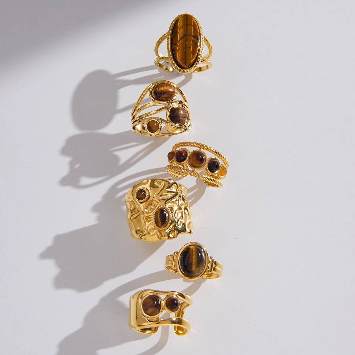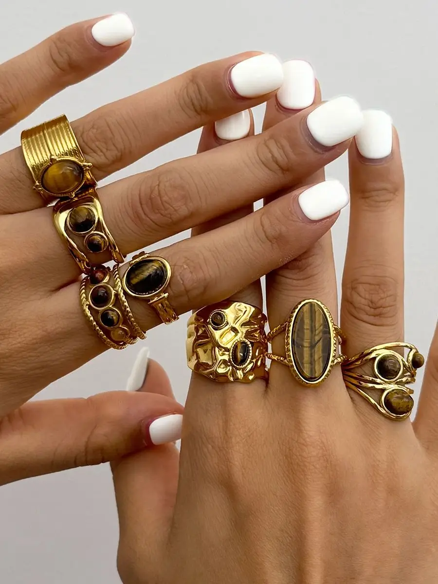 Anillo ovalado de piedra natural ojo de tigre vintage